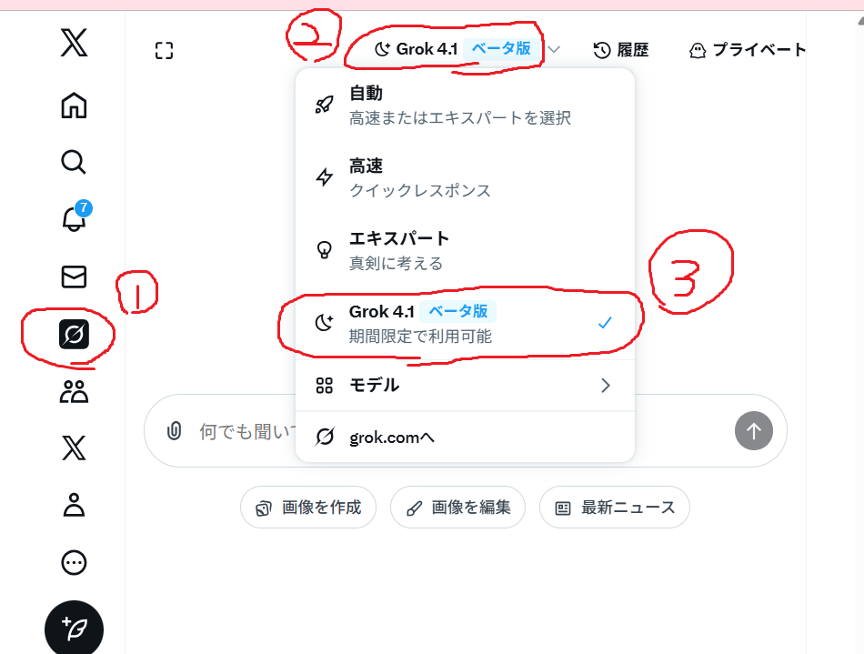 XでGrok 4.1を利用する手順は下記の通りです。